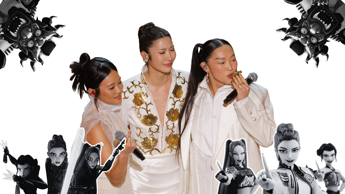 When the envelope was finally opened and the big win revealed, EJAE (one of the songwriters and the singing voice behind animated demon-hunter Rumi) stood at the winner’s podium and said: